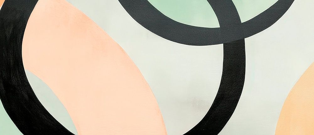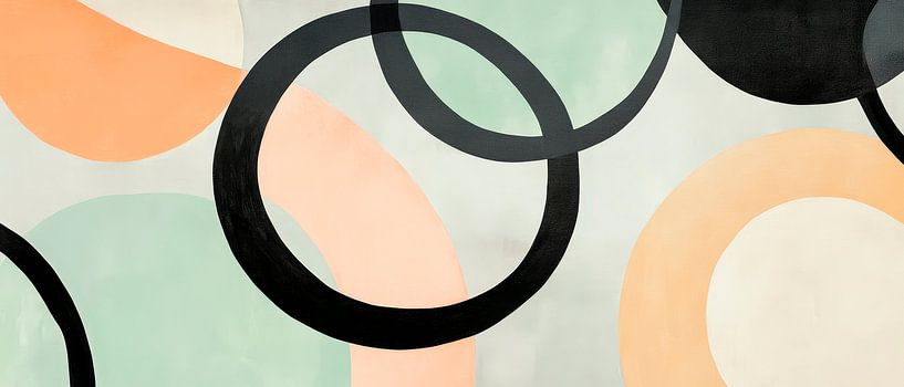 A captivating composition of soft pastel colours and striking black circles unfolds and creates a harmonious balance. The curved shapes add dynamism and elegance to the room. Ideal for a modern living room, this work of art invites you to linger and reflect, creating a relaxed, creative atmosphere.