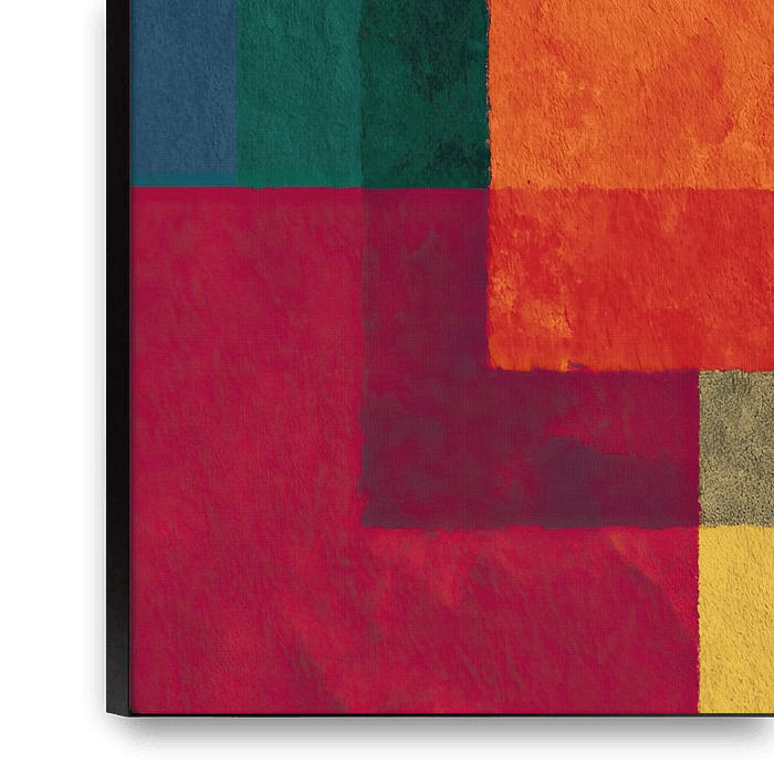 Buy this abstract artwork Abstract colour layering with central orange by Niklas Maximilian on canvas, ArtFrame, poster and wallpaper, printed on demand in high quality.