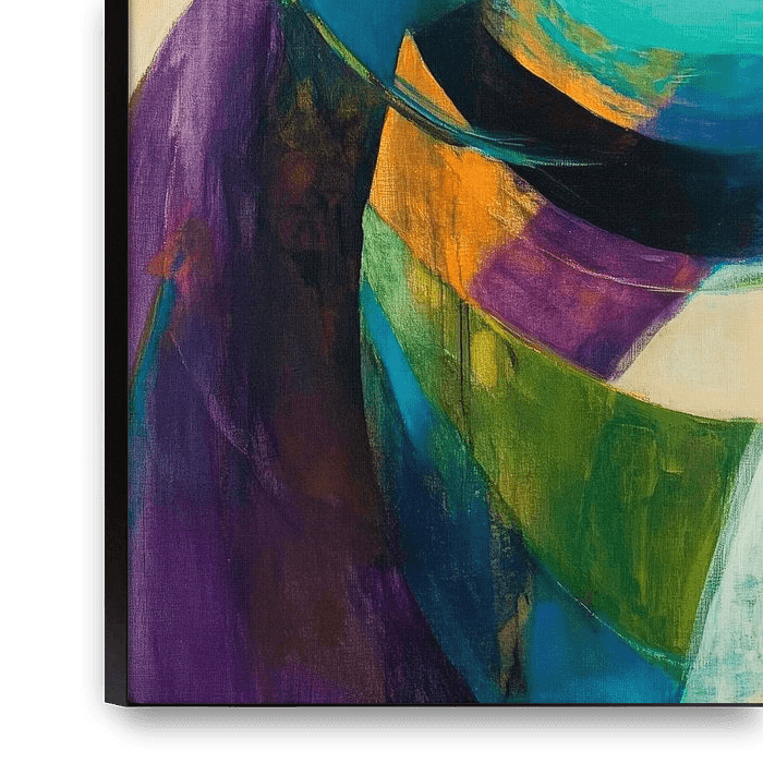 Fascinating colour loops dance harmoniously across the canvas and lend vibrancy to any room. Intense greens and soft blues meet warm ochre accents to create an inviting atmosphere. Perfect for the living room to stimulate inspiring conversation and promote a relaxed mood.