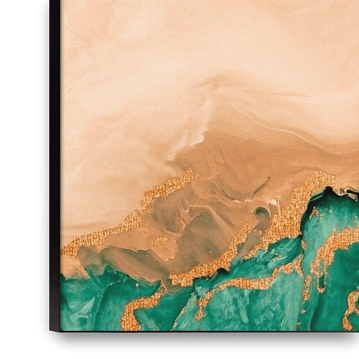 Soft green tones combine with warm earthy colours to create a harmonious composition. The flowing, organic lines have a calming effect and invite you to relax. This work of art brings a refreshing touch to your living room and creates an inviting atmosphere that invites you to linger. Perfect for quiet evenings and stimulating…