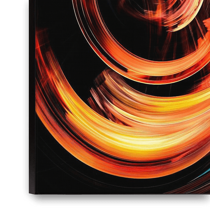 This striking artwork is an explosion of colour and movement. The design combines vibrant shades of red, orange, yellow, and blue on a contrasting black background. The abstract shapes and flowing lines convey a sense of energy and dynamism, perfect for bringing life to a modern space. Suitable for a living room, office or hobby room,…