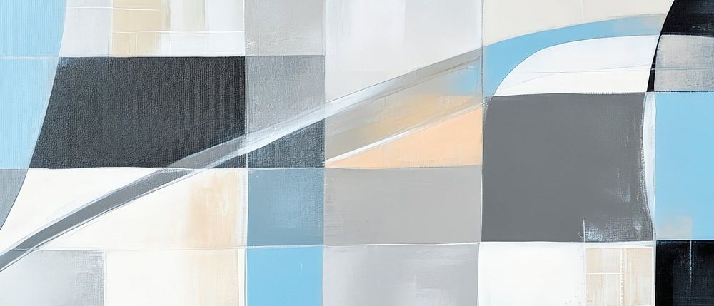 Gentle geometric shapes dance in harmonious colours, while bold blacks and soft blues create a calm yet dynamic atmosphere. This modern composition radiates calm and clarity and fits perfectly into the living room, where it creates conversation and inspiration.