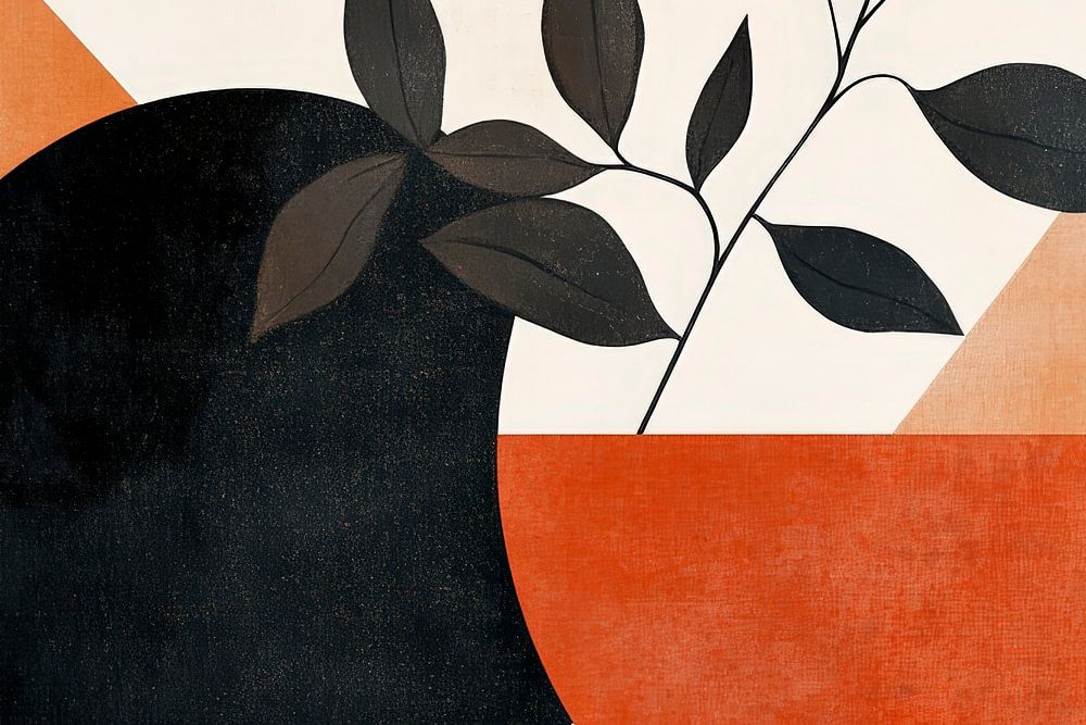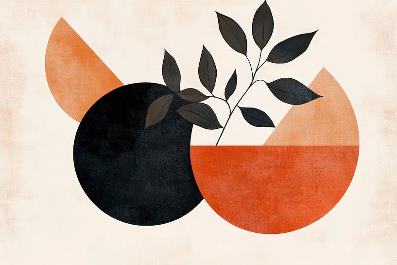 Soft earthy tones and geometric shapes harmonise in a stylish composition. The curved lines and elegant leaf structure bring a touch of nature into the home office and create an inspiring atmosphere. This artistic display radiates calm and creativity, ideal for a creative retreat or as an eye-catcher in the living room.