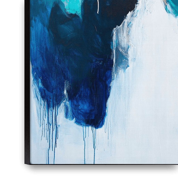 A mesmerising explosion of colour unfolds in soft shades of blue and glittering gold, reminiscent of calm ocean waves. The flowing structures and harmonious contrasts lend any room a calming elegance. Ideal for the living room or a creative corner where inspiration and relaxation go hand in hand.