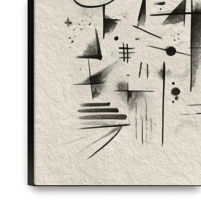 Abstract portrait, calm black and white, ink, playful lines, living room, bedroom