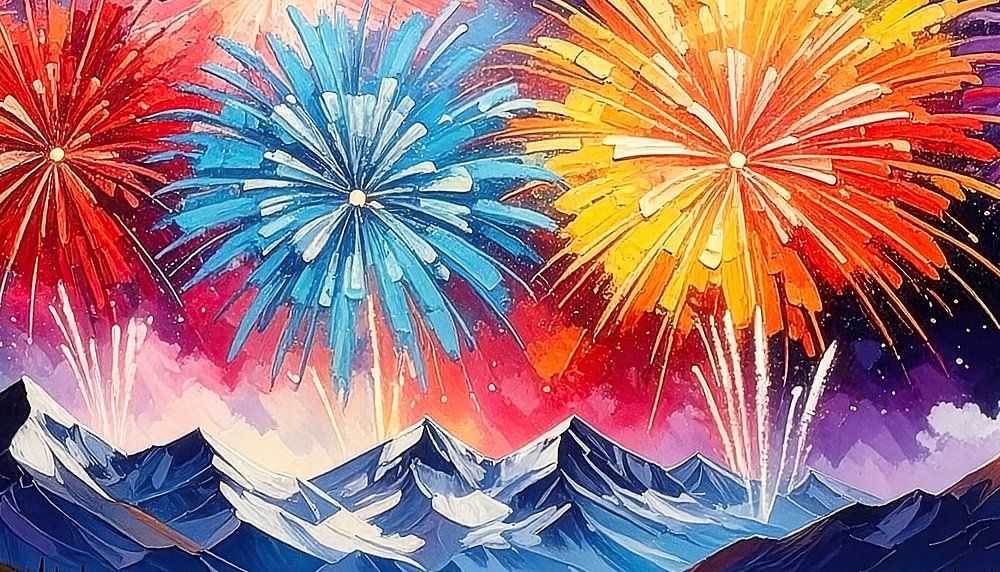 This painting opens up like a magnificent spectacle of light and colour in a thick, impasto style: Fireworks, reminiscent of the magical threshold between the old and new year, take over the entire canvas with an overwhelming explosion of rainbow colours. The sparks leap across the night sky, transforming it into a pulsating stage full of energy, movement and expectation.
