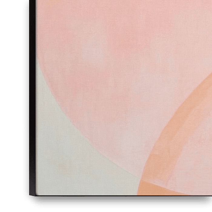 Soft pastel colours embrace a harmonious composition of geometric shapes, where a large, pink circle and translucent arches allude to a play with light and space. Clear lines and soft transitions invite the viewer to immerse themselves in a world of aesthetics and tranquillity, where minimalism meets subtle colour nuances.