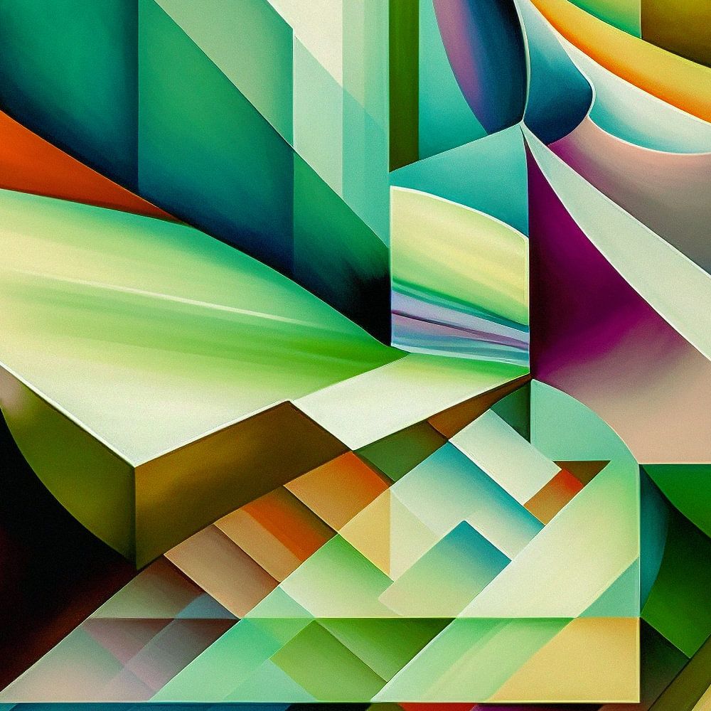 Abstract geometric shapes in green, gradient planes by Roger VDB
