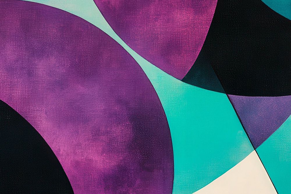 Futuristic shapes in intense shades of violet and turquoise dance harmoniously over a soft background. The dynamic circles and clean lines add a creative energy to any room. Perfect for a modern living room, where they stimulate conversation and inspire the imagination - a real eye-catcher!