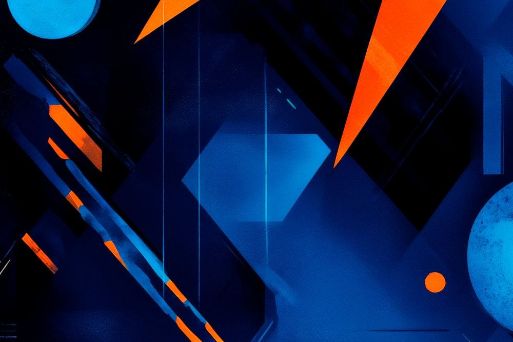 Bright orange tips break through a deep blue, while geometric shapes in a dynamic arrangement invite movement. The combination of energy and elegance creates an exciting atmosphere that is perfect for a modern living room or a creative office. This is where art meets inspiration and encourages reflection.