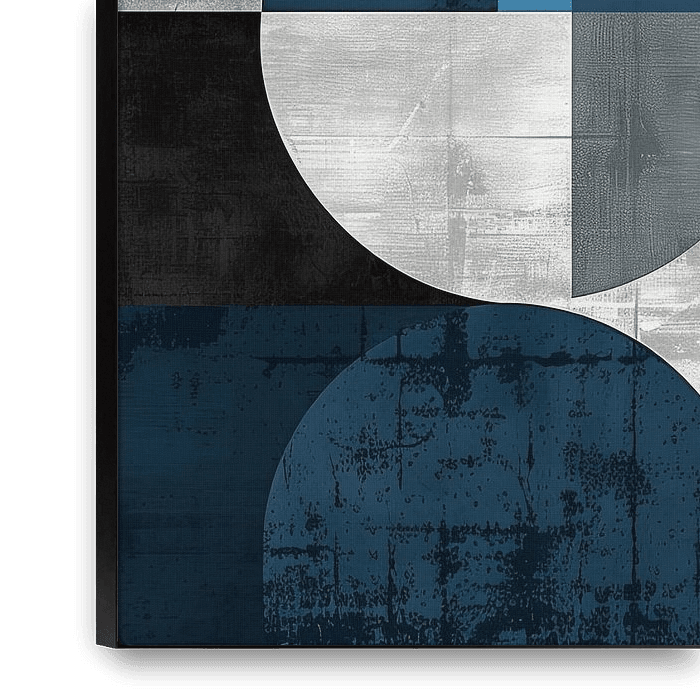A visual masterpiece that captures the essence of geometric art. This abstract composition of overlapping rectangles in deep blues and subtle shades of grey creates a harmonious balance of structure and dynamism. The textures and colour gradations create a fascinating depth that lends any room a modern yet timeless aesthetic. Perfect…