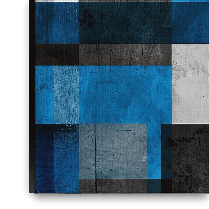 A visual masterpiece that captures the essence of geometric art. This abstract composition of overlapping rectangles in deep blues and subtle shades of grey creates a harmonious balance of structure and dynamism. The textures and colour gradations create a fascinating depth that lends any room a modern yet timeless aesthetic. Perfect…