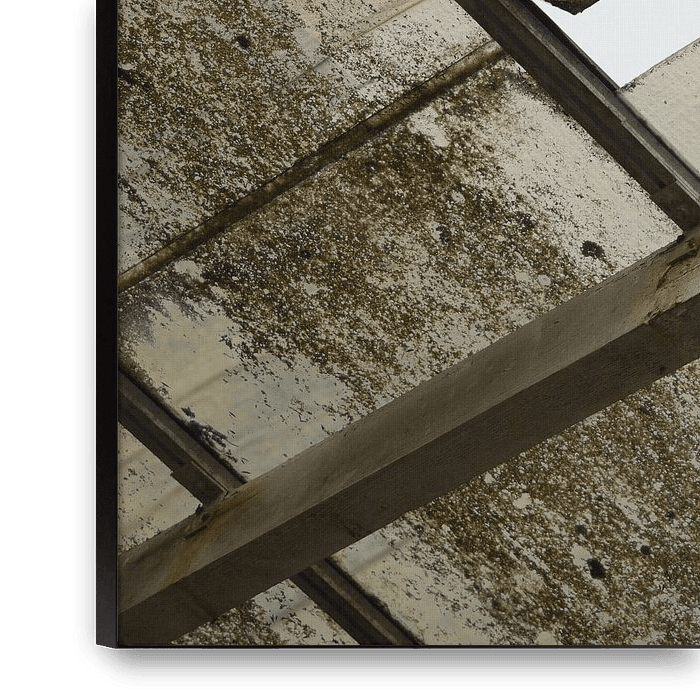 For this mixed media work, I wanted to mix a window I had photographed in an old horticultural greenhouse with a texture. To do this, I painted empty tea bags and taped them to a canvas. I merged this into a whole. Which created an abstract work.