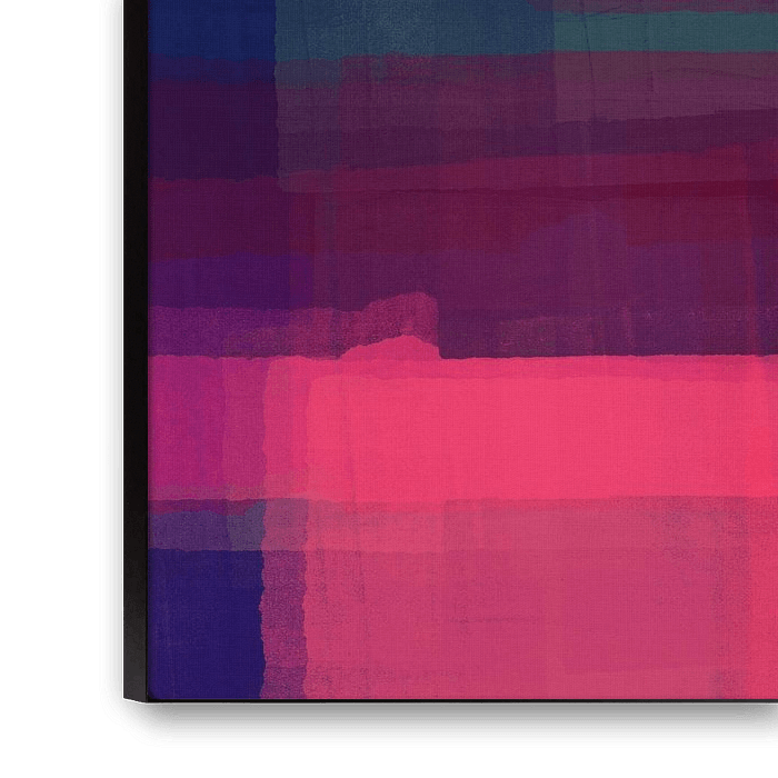 Buy this landscape artwork Abstract landscape. Color blocks in neon pink, cobalt blue, warm orange. by Dina Dankers on canvas, ArtFrame, poster and wallpaper, printed on demand in high quality.