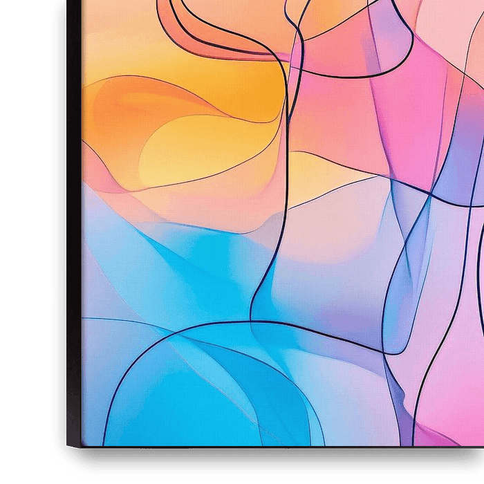 Delicate lines and gentle colour gradients merge to create a harmonious portrait that reflects emotions and dreams. The combination of pink, blue and purple creates a dreamy atmosphere, ideal for a bedroom or a creative retreat in the office. This artwork invites you to linger and reflect, perfect for inspiring spaces.