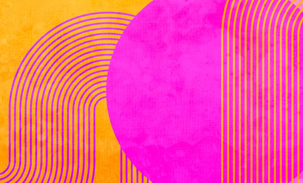 An abstract painting of organic geometric rainbow shapes and lines in modern colours with a hint of Scandinavian art from Northern Europe with a touch of retro vintage culture.
