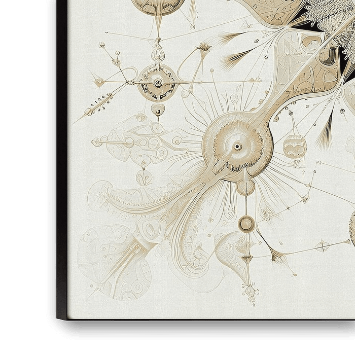 This art print shows: nature, organisms, shapes, spheres, stars, is abstract and square, has a sepia colour, deals with reality and fantasy, is decorative.