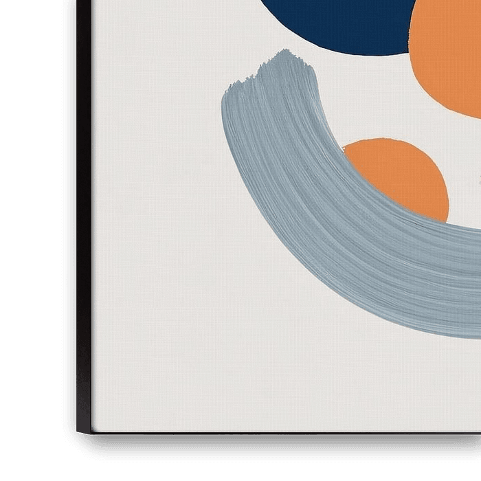 This colourful, abstract design grabs immediate attention with its playful combination of shapes and dynamic brushstrokes. The contrasting colours, ranging from bright yellow and deep blue to soft tones such as pink and grey, give it a vibrant and modern feel. It is a perfect addition to a contemporary space, such as a living room, office or hobby room. The flowing lines and undulating patterns exude movement and energy, while the subtle overlapping of colours creates a certain depth and texture. This artwork fits perfectly into interiors with a modern, minimalist or eclectic theme, and will bring a fresh and artistic atmosphere to any room.