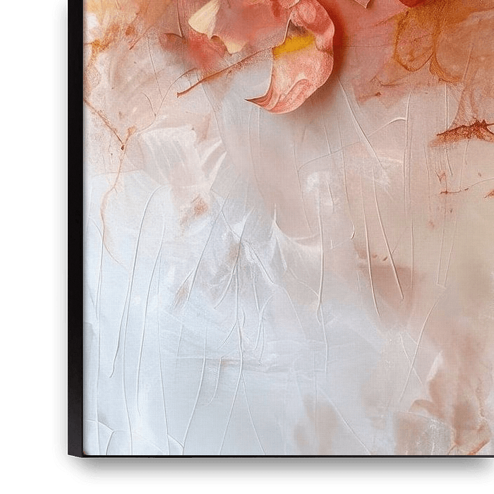 An atmospheric painting of floating petals in warm autumn colors and soft winter hues exudes peace and serenity. A timeless scene that evokes a connection with nature and a poetic stillness.