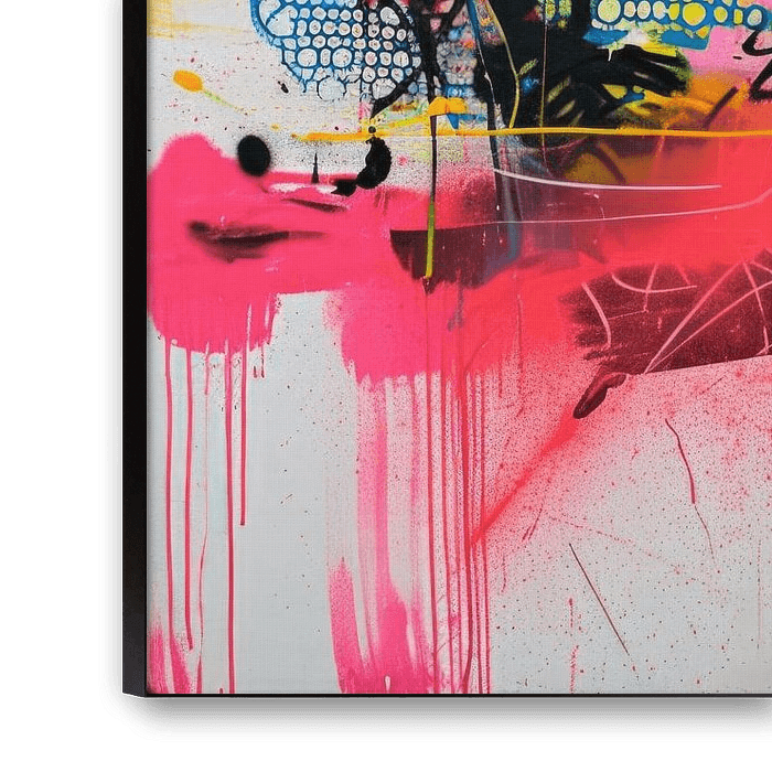 Keywords: neon abstract painting, bright color wall art, dynamic artwork, energetic modern wall art, expressive abstract work, neon blue pink yellow, powerful abstraction, modern statement art