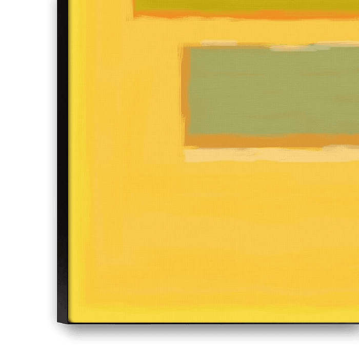 Abstract painting with yellow, orange and green. Inspired by the style of Mark Rothko. Vertical composition with horizontal surfaces. Basic colour yellow.