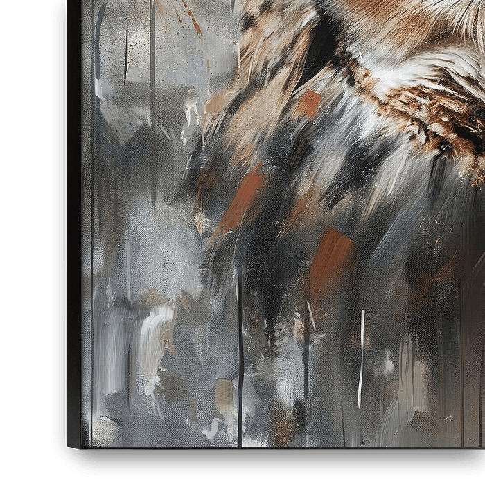 A mystical owl, cloaked in abstract patterns, comes to life on this intriguing canvas. The combination of abstract style and the majestic presence of this beautiful owl creates an enchanting work of art that stimulates the imagination and adds a touch of mystery to any room.