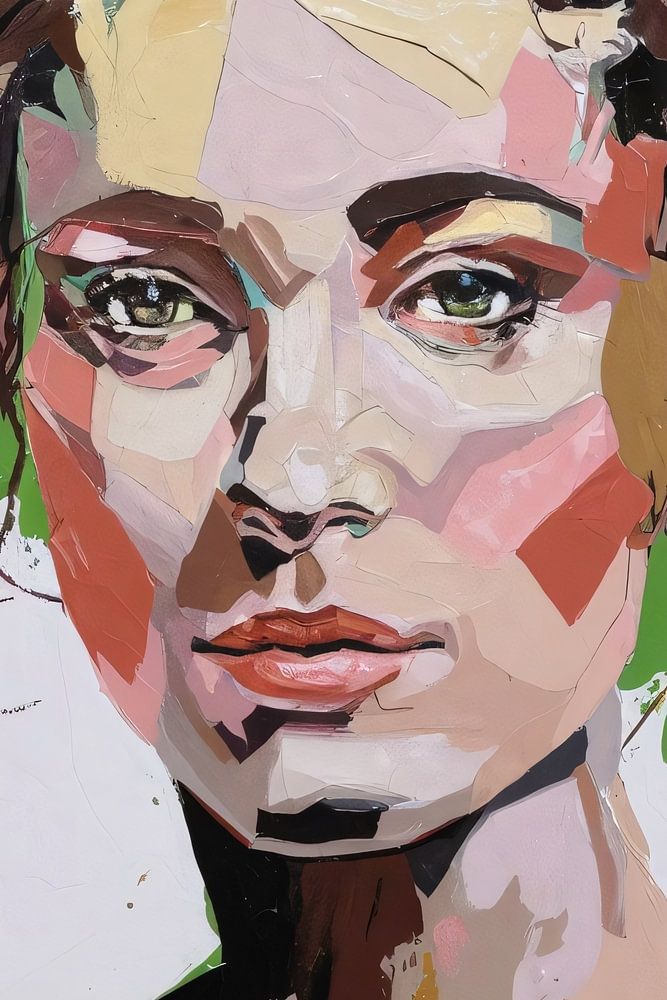 This painting brings to life a unique, abstract interpretation of a portrait. The expressive colour areas and dynamic brushstrokes give the image depth and emotion. Exuding both strength and vulnerability, this artwork attracts attention with its intriguing mix of bright and earthy tones. Perfect for modern interiors, it adds a touch of creativity and mystery to any space. It is a talking point and brings a distinctly artistic atmosphere. Ideal for those looking for contemporary art that evokes emotions and offers modern style with an artistic twist.