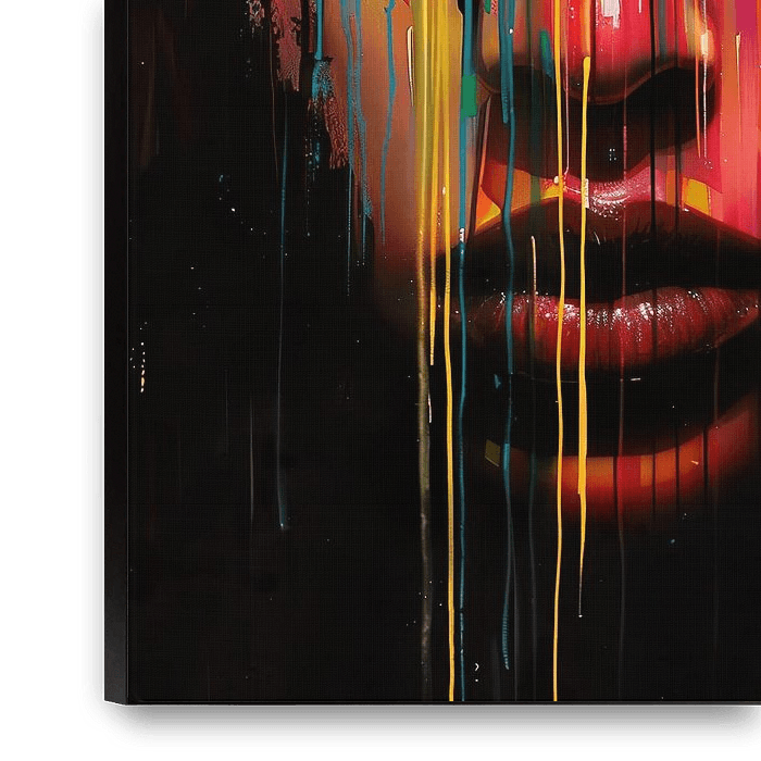 The abstract portrait shows a face composed of flowing lines and shapes, in various vibrant colours. The contours are dynamic and playful, while the colourful patterns add depth and expression. The whole piece exudes a modern, energetic and intriguing atmosphere.