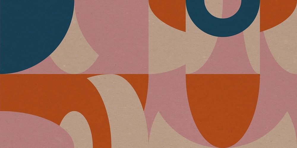Abstract retro geometry in pink, orange, teal, white. by Dina Dankers