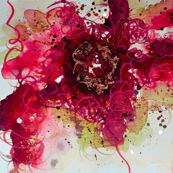 Buy this abstract artwork Abstract work in lush forms in fresh red tones by Ireen Bos on canvas, ArtFrame, poster and wallpaper, printed on demand in high quality.