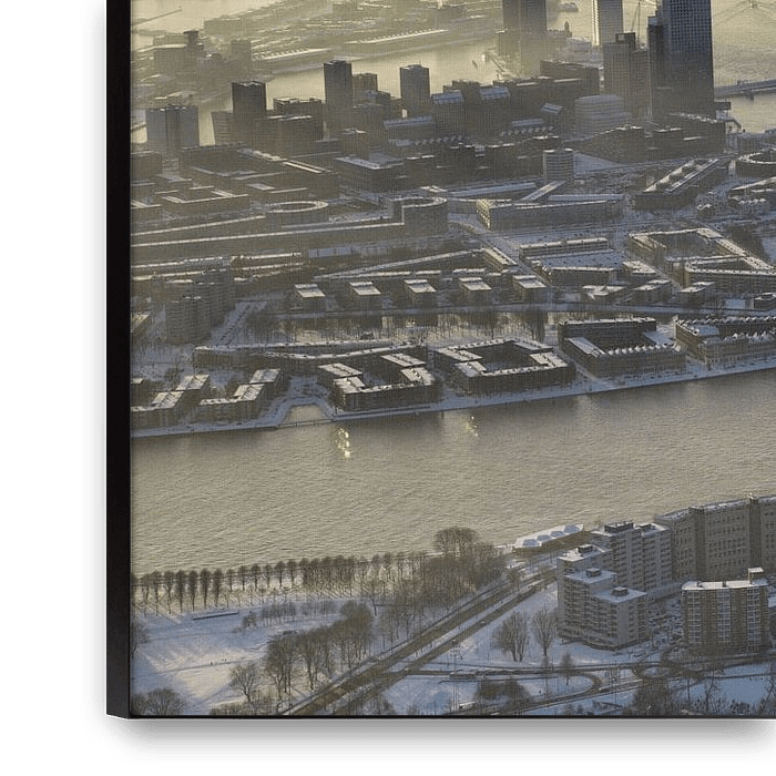 Buy this of Rotterdam Aerial view of a wintry, snow-covered, Rotterdam by Marco van Middelkoop on canvas, ArtFrame, poster and wallpaper, printed on demand in high quality.