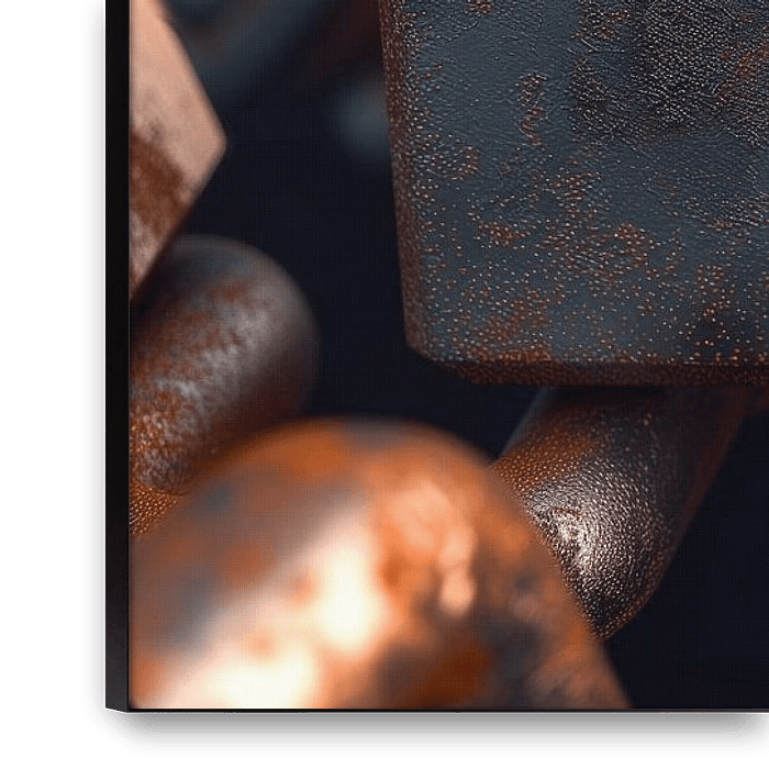 Rusty steel blocks in the centre of the picture against a blurred background stand for strength and durability despite decay and ageing. The work reflects the contemporary preference for materials and their ageing processes in conjunction with minimalism, which is emphasised by the clear composition and concentration on the…