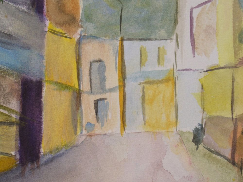 This watercolour was painted from a photo I found on the internet. I lived in Afandou myself over 25 years ago. I know roughly where the photo was taken.