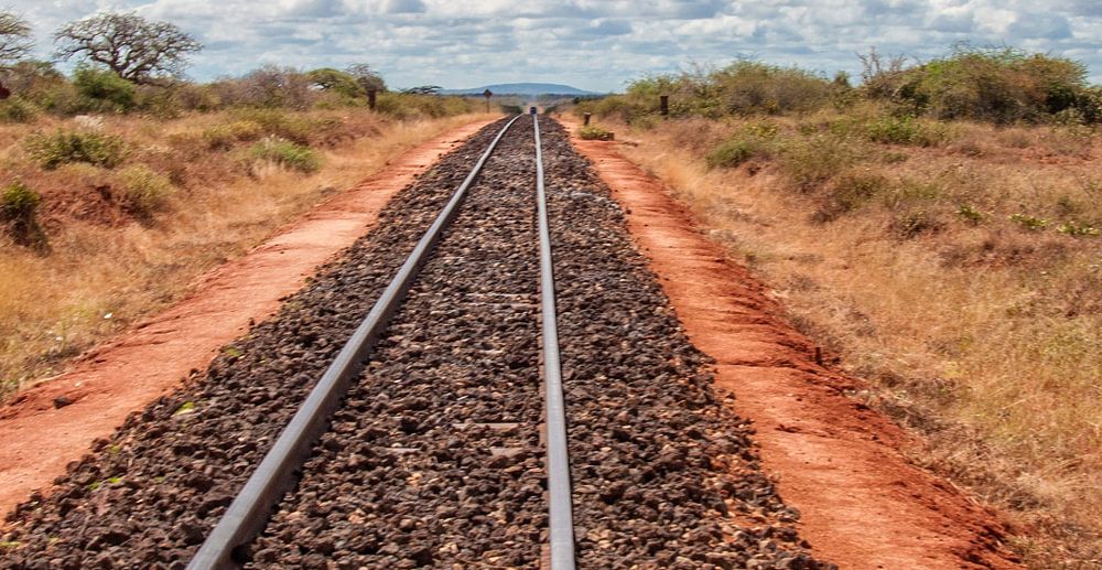 Spoorbaan dwars door het Afrikaanse landschap.