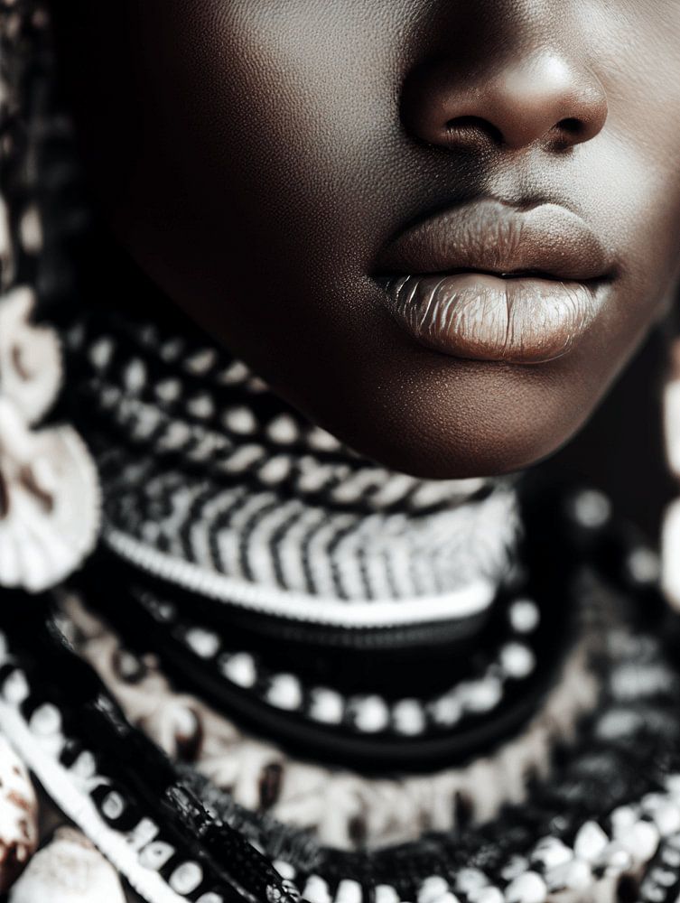 African woman with ethnic jewellery, made of shells. A special eye-catcher for your interior! Choose the size and material for this work and make it your own.