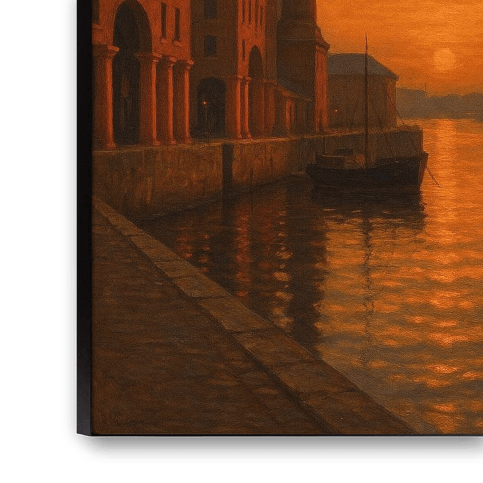 As wall art, Albert Dock Tranquility suits minimalist interiors, lofts, or creative workspaces. It adds cinematic mood — an atmosphere of memory and stillness that speaks across time. A portrait of a working city, dreaming at sunset.