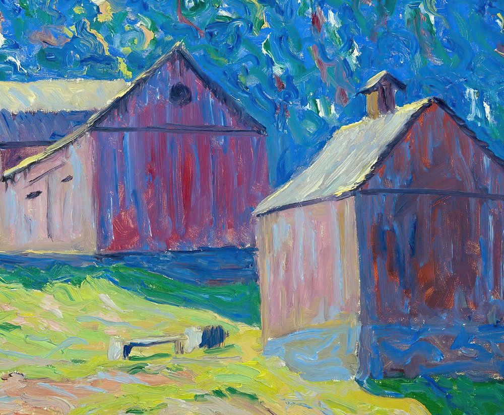 Buy Allen Tucker-Red Barns as a reproduction on canvas, ArtFrame, poster and wallpaper, printed on demand in high quality.