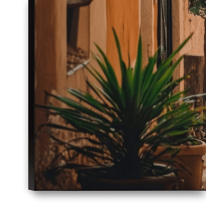 A narrow, inviting path winds its way through charming old walls, lined with lush plants and pots that spread life and colour. At the end, the sparkling water gently glows, kissing the horizon, while Mediterranean serenity flows through the alleyways. A harmonious combination of nature and architecture that invites you to dream.