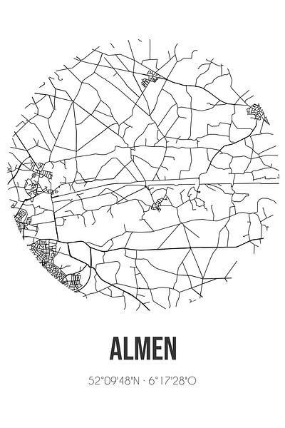 Buy this abstract artwork Almen (Gelderland) | Map | Black and white by Prints of Place on canvas, ArtFrame, poster and wallpaper, printed on demand in high quality.