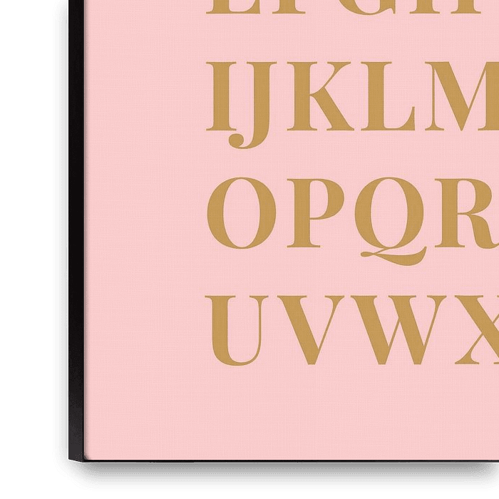 Timeless typographic poster in pink/gold with the Alphabet, from A to Z.