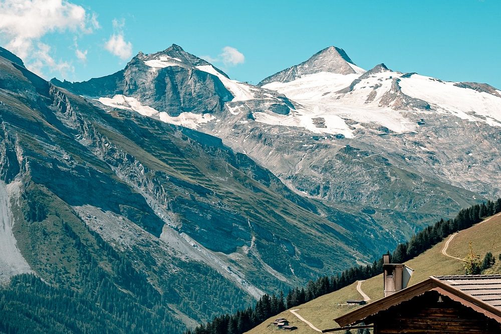Welcome to the lush green embrace of Hintertux Mountain in Austria, where the summer sun casts its rays over a breathtaking landscape of majestic peaks and vast valleys. In this enchanting photo, you get a panoramic view of the various mountain peaks, some still covered in a graceful layer of snow, while others are bathed in warm sunlight.