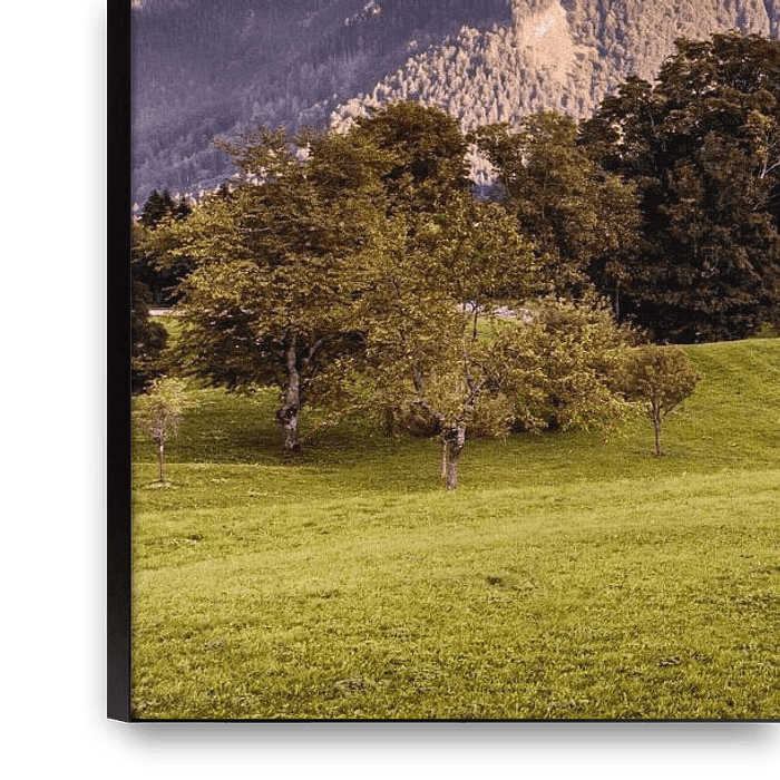Buy this landscape artwork Alpine meadow in Tschengla by Rob Boon on canvas, ArtFrame, poster and wallpaper, printed on demand in high quality.