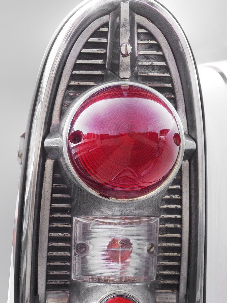The image shows you the rear of a fantastic American classic car from 1956. The focus is on some details of this spectacular automobile.