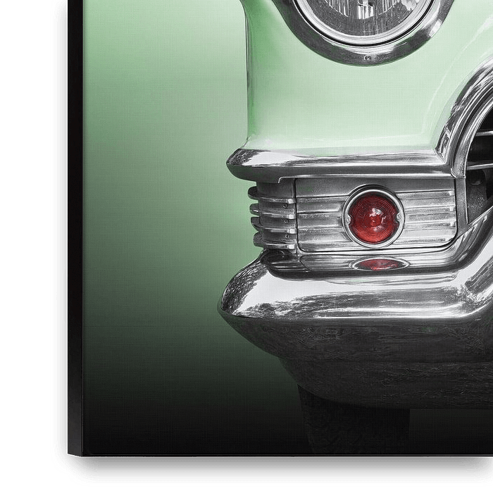 The photo shows you the front of a fantastic American classic car from 1955. The focus is on some details of this spectacular automobile. In the foreground is the interplay of lines, colors and surfaces.