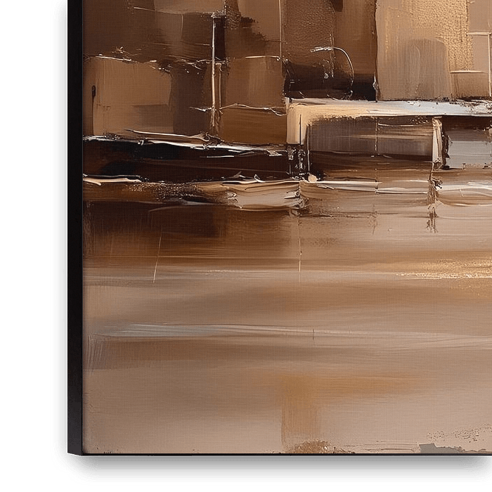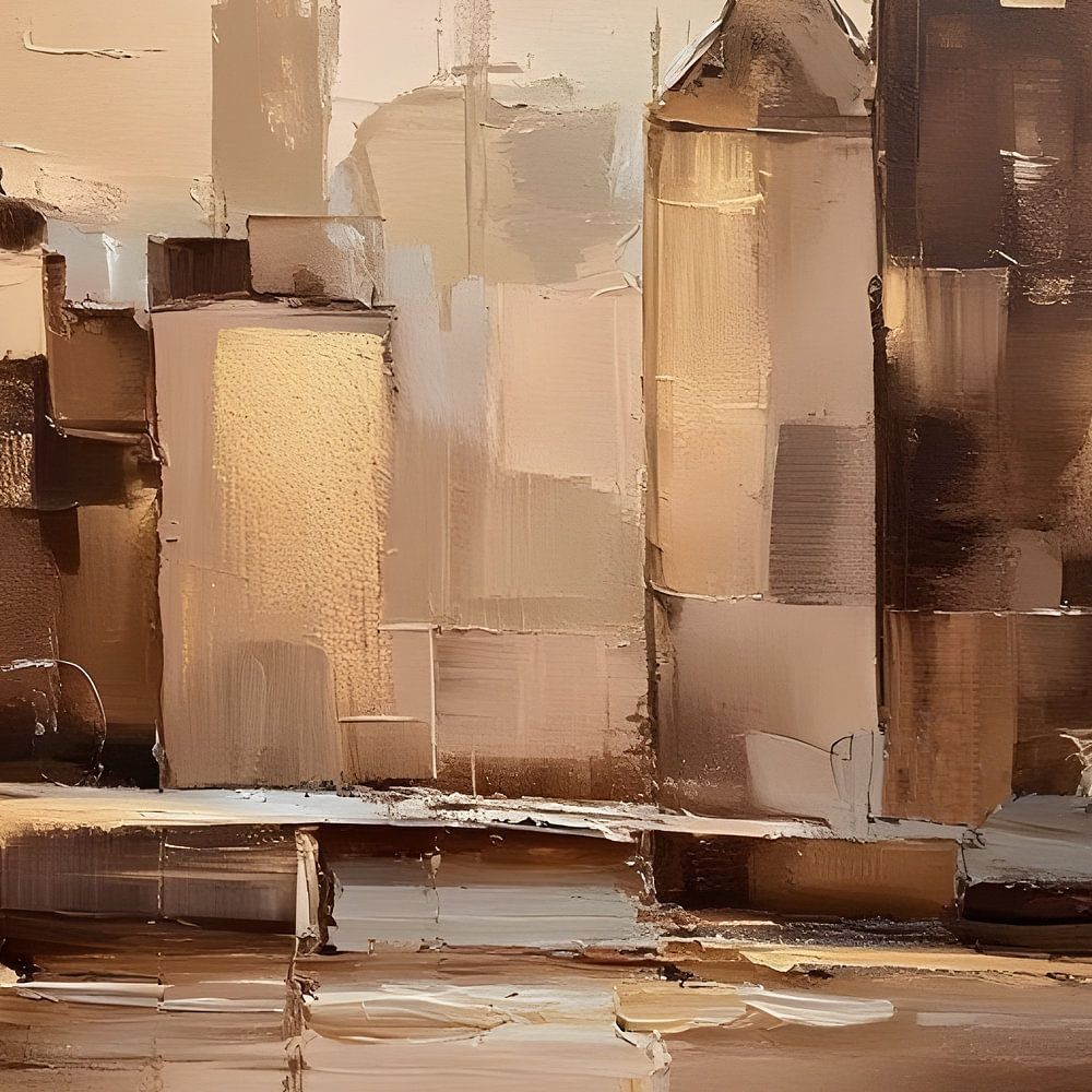 Inspired by the city of canals, facades and reflective light, this work translates Amsterdam into a warm composition of brown, cream and gold tones. Layered textures and fluid movements are reminiscent of historic buildings, water and the…