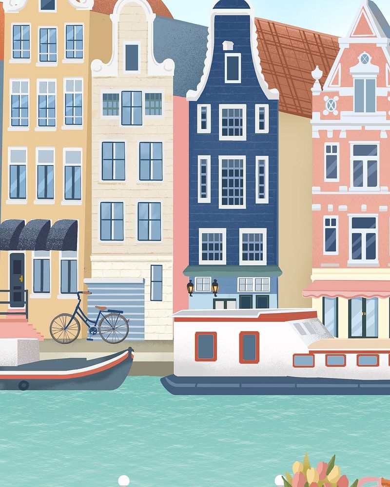 Buy this landscape artwork Amsterdam City by Petra Lizde on canvas, ArtFrame, poster and wallpaper, printed on demand in high quality.