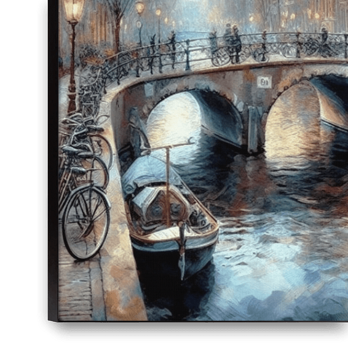 Buy this digital art artwork Amsterdam canal 3 by Yvonne van Huizen as a reproduction on canvas, ArtFrame, poster and wallpaper, printed on demand in high quality.