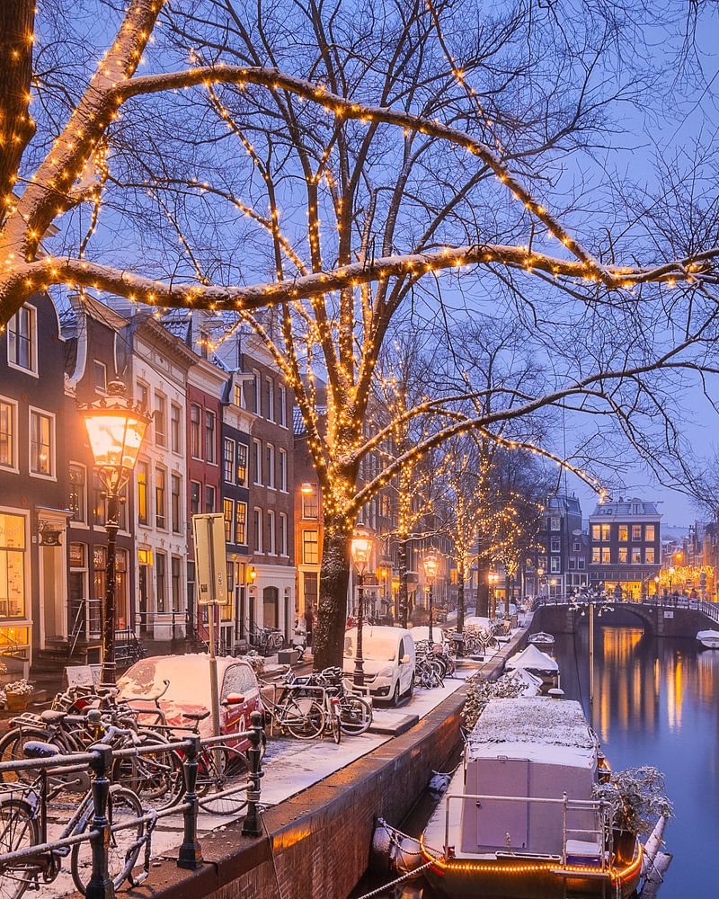 What could be more beautiful than the Amsterdam canals in the snow? When the evening falls and the lights on the Spiegelgracht go on, the picture is complete. What a wonderful evening this was!