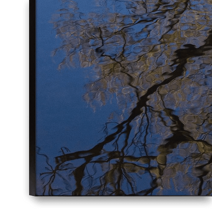 An impressionistic image of a tree through the reflection in the water. With a nice color pallet.
