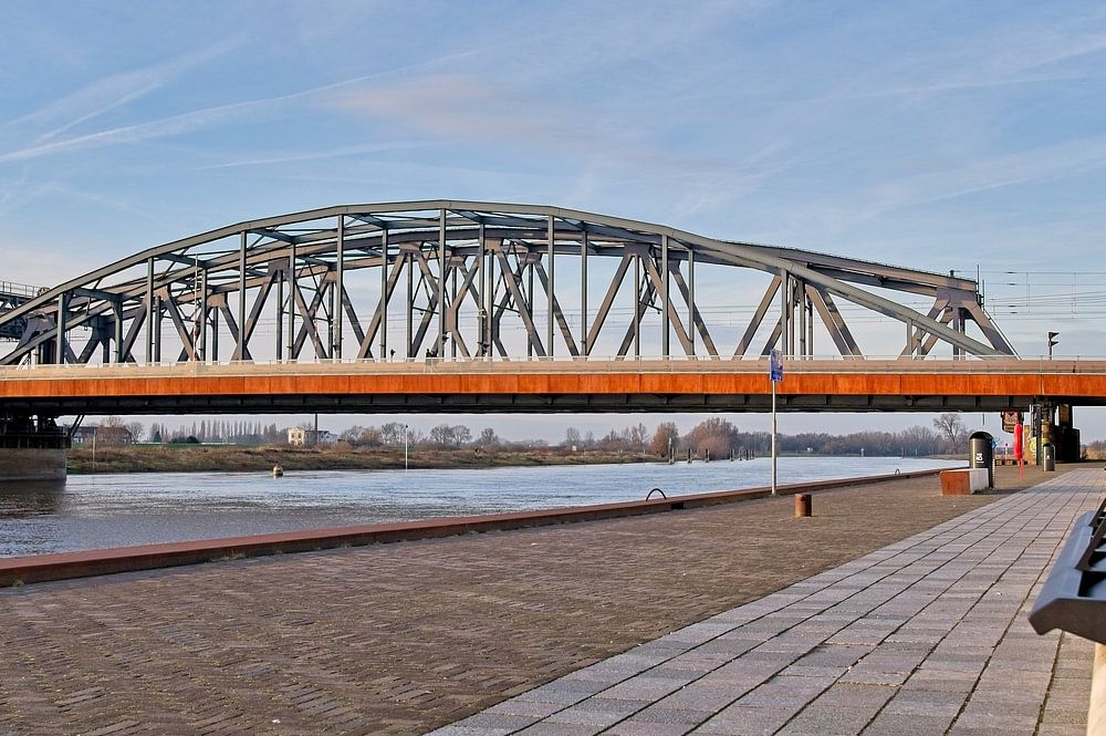 Fancy a restful moment with a view? This photo of the Old IJssel Bridge in Zutphen shows how atmospheric simple can be. A sturdy bridge in all its glory, steel lines radiating strength and history and there, on the IJsselkade, a bench that says, "Come and sit down for a while."